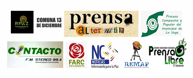 Firman: Proceso Campesino y Popular de la Vega, Colectivo Comunicacional FARC Occidente, RPAZ Red de Prensa Alternativa Zur, Red de Medios Alternativos y Populares (REMAP), Prensa Libre Cauca, Agencia de Comunicaciones de Prensa Alternativa Cauca (ACPA-Cauca), NC Noticias, Contacto FM Stereo 99.4, Comuna 13 de Diciembre.