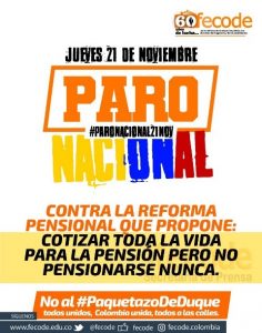 Ese fantasma que recorre el continente llegó a Colombia, anunció un Paro Nacional el 21 de noviembre y la vieja oligarquía está disque paralizada de miedo, un miedo que busca irradiar a las ciudadanías en rebeldía, que se han propuesto ejercer el derecho inalienable a la protesta en las calles y campos.