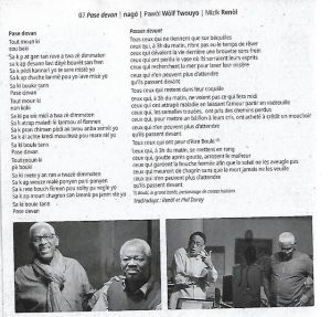 En resumen, si quieres experimentar un placer total, compra el CD y escúchalo siguiendo el texto en criollo haitiano y en traducción francesa en el hermoso librito que lo acompaña. Es el único regalo de Navidad imaginable este año (14,99€).
