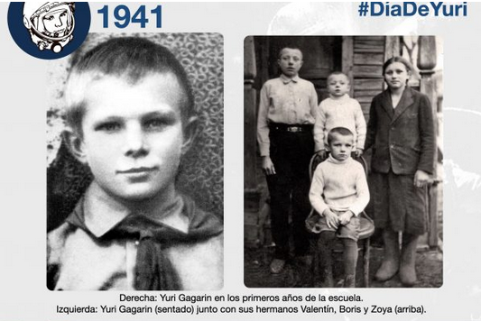 1938… los hermanos Valentín, Borya, Zoya y Yuri Gagarin… Por la mañana del 12 de abril de 1961 Yuri dijo: “¡Vamos!” y se inscribió para siempre en la Historia. Para siempre