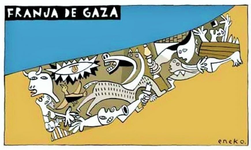 La loca carrera de Israel sigue su curso, pero en condiciones cada vez más inquietantes por su contexto de múltiple y creciente tensión bélica internacional. Israel es un país pequeño sin recursos naturales y rodeado de estados hostiles y poblaciones árabes radicalizadas por décadas de injusticia y doble rasero. En las propias metrópolis europeas, Londres, París, Berlín…, donde se prohíben las manifestaciones en apoyo a Palestina, se palpa esa tensión. Estados Unidos, el gran valedor de Israel, está en posición delicada. Su guerra por poderes en Ucrania se ha convertido en un agujero negro. (90.000 bajas ucranianas desde el inicio de la desastrosa contraofensiva el 4 de junio, según declaró Putin el 5 de octubre, y el dato es creíble). Las reservas de armamento de su ejército están agotadas. El Pentágono se está preparando abiertamente para la guerra con China mientras libra indirectamente una guerra contra Rusia. Por si fuera poco, Biden está en el centro de la pelea en el interior del establishment americano, sin precedentes por la criminalización entre candidatos adversarios a las presidenciales del año que viene.
