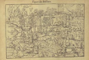 El pueblito “brasileño” de Ruán, extracto del libro festivo titulado “Esta es la deducción del suntuoso orden de agradables espectáculos y magníficos teatros erigidos y exhibidos por los ciudadanos de Rouen, ciudad metropolitana del país de Normandía; A su sagrada maestad el Rey muy cristiano de Francia, Enrique segundo, su sobrano señor, y a la muy ilustre Dama, señora Catalina de Médicis, La Reina su esposa […]”. Fuente : INHA