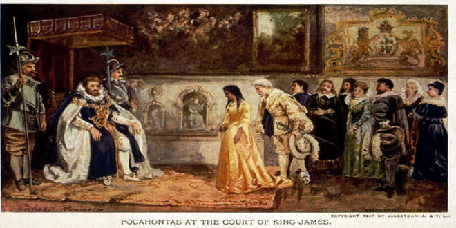 Imagen de portada: Pocahontas en la corte del rey Jaime de Inglaterra (1616), tarjeta postal de 1907