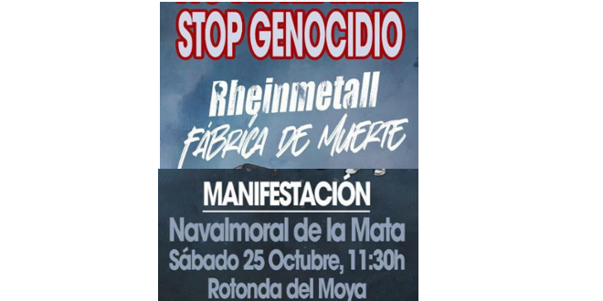 - Convocatoria del 25 de Octubre, contra el Rearme y las fábricas de muerte como Rheinmetall: Paremos el Genocidio