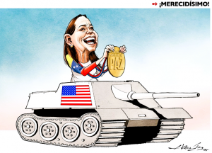 Como parte del naufragio del relato de la “transición democrática”, María Guarimba Machado, la “heroína” proyanqui de la “transición a la democracia” y con ella todos los que sueñan que Venezuela vuelva a ser una colonia de Miami, aplaudieron el bombardeo y lo presentaron como un paso hacia la libertad y democracia, pero eso sí recordando que ella y los de su calaña de vendepatria ofrecen todas las riquezas del país a cambio de que los dejen gobernar la colonia.