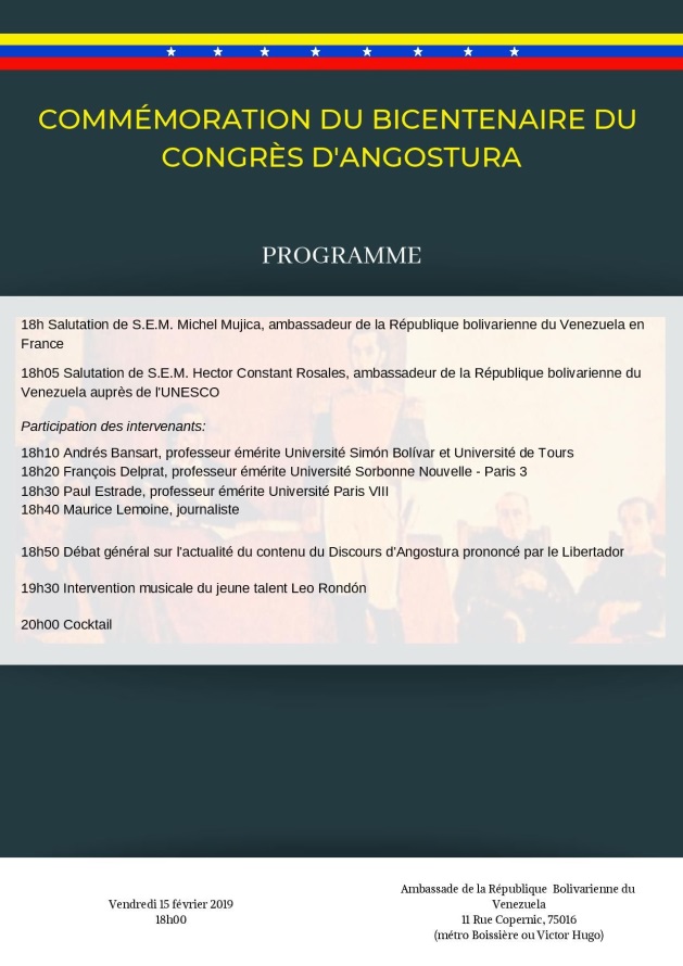 Ambassade de la République bolivarienne en France- Délégation permanente de la République Bolivarienne de Venezuela après de l’UNESCO