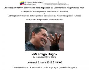 Á l’occasion du 6ème anniversaire de la disparition du Commandant Hugo Chávez Frías. Le mardi 5 mars 2019