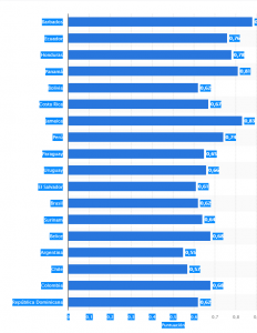 Honduras ha sido el país con más crímenes de este tipo, con 6 por cada 100.000 mujeres. Seguido por República Dominicana, con 2, y El Salvador y Uruguay, con 1,6 cada uno. Las naciones con menos de una víctima por cada 100.000 mujeres fueron Puerto Rico, Perú, Colombia, Costa Rica, Nicaragua y Chile. Cuba tuvo la tasa continental más baja: 0,3.