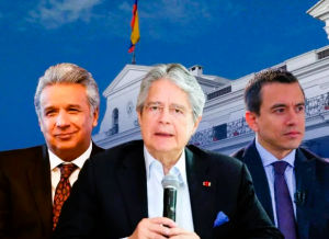 Los cuestionados e impresentables exmandatarios ecuatorianos Lenín Moreno y Guillermo Lasso, y el imberbe magnate bananero Daniel Noboa, quien funge como inquilino del Palacio de Carondelet.