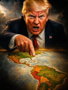 Adicionalmente Trump lanzó el mayor bloqueo naval desde la época de la “crisis de los misiles” con John F. Kennedy, para estrangular la economía de Venezuela y provocar la caída de Nicolás Maduro, aunque también colocó en la mira al Gobierno de Gustavo Petro en Colombia. El injerencismo es de tal naturaleza, que se han cometido actos de verdadera piratería internacional y por primera vez un gobernante norteamericano afirma: “Venezuela está completamente rodeada por la Armada más grande jamás reunida en la historia de Sudamérica. Esta solo crecerá, y la conmoción para ellos será como nunca la han visto, hasta que devuelvan a Estados Unidos todo el petróleo, las tierras y otros activos que nos robaron previamente”. Todo esto es una amenaza para Latinoamérica, que aprovecha a los gobiernos de la “marea azul” del presente.