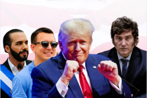 El prepotente magnate estadounidense Donald Trump, máximo líder de la ultraderecha en el hemisferio, con mandatarios fascistas latinoamericanos como Nayib Bukele, Daniel Noboa y Javier Milei, quienes siguen a pie juntillas los dictados de Washington.
