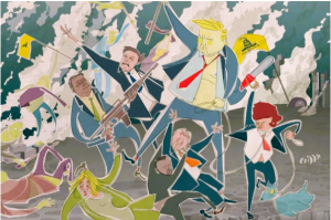 Comenzaría con una estrategia de plagio a la izquierda. Recomendaría empezar por atacar el capitalismo clientelista. Copiar los argumentos de la izquierda contra el sector financiero corrupto y el papel de los bancos centrales en su apoyo. Luego, criticar el sistema electoral basado en dos facciones del mismo régimen oligárquico o «unipartidista».