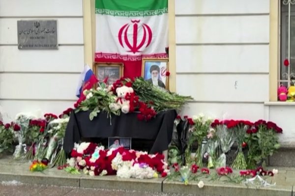Homenaje al ayatolá Ali Jameneí en la Embajada de Irán en Moscú. / Euronews