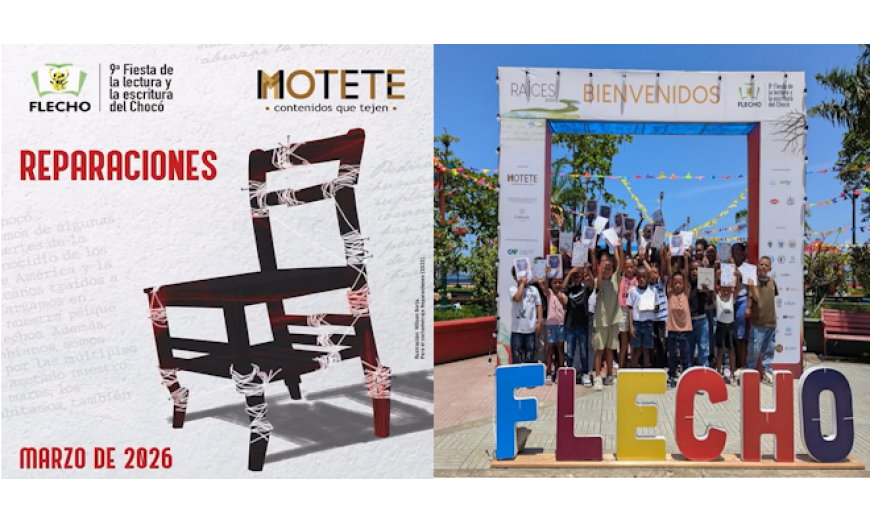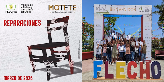 La mañana arropa a Bocas del Atrato, un corregimiento de Turbo (Antioquia) enclavado a orillas del Golfo de Urabá, donde las aguas del mar Caribe se mezclan con las del río Atrato. Es el área del mapa del noroccidente de Colombia donde se enlazan Suramérica y Centroamérica, donde el Caribe se acerca al Pacífico y donde se tocan el departamento de Antioquia con el Chocó. Estudiantes del corregimiento corretean por las aulas de madera, con vista hacia la selva húmeda. Esperan los libros que llegan en lancha desde el otro lado del golfo. Es el noveno año de Flecho, la fiesta de la lectura y la escritura del Chocó, que rompe con la marginalización de comunidades históricamente excluidas y racializadas, utilizando el poder de la literatura.